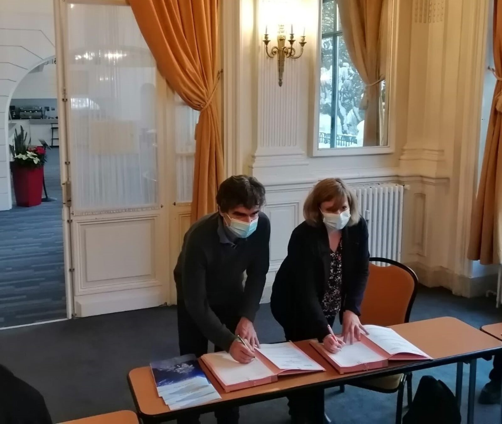 Eric Fournier, Président de la Communauté de Communes de la vallée de Chamonix Mont-Blanc et Vice-Président de la Région Auvergne-Rhône-Alpes et Sandra ROSSINI, Directrice Territoriale GRDF Haute-Savoie et Pays de Gex